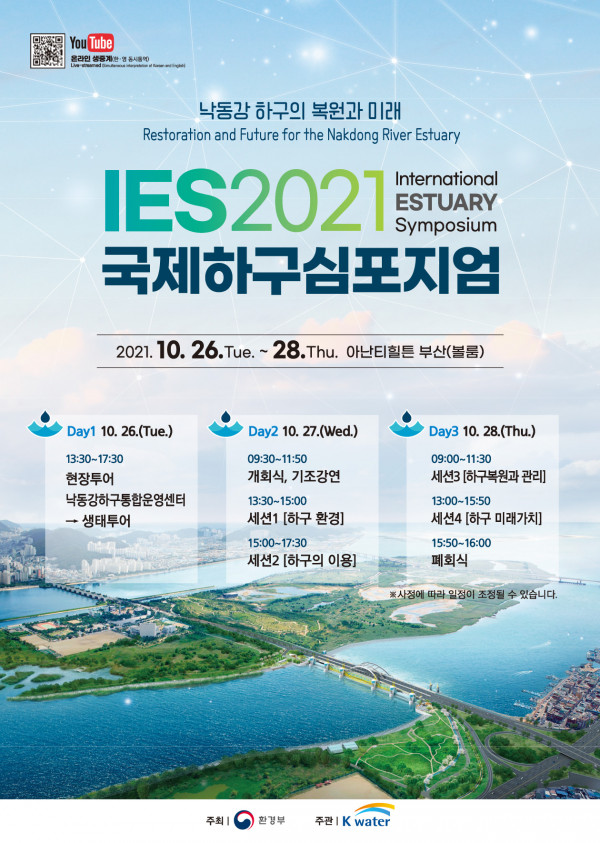 환경부가 주최하고, K-water가 주관하는 「2021 국제하구심포지엄」이 아래와 같이 개최됩니다